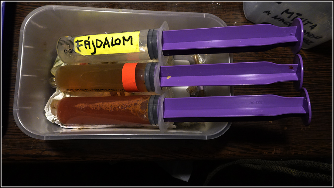 Feljött a monitoron. Mikori fotó lehet. Miki kezében gyógyszeres fecskendők.