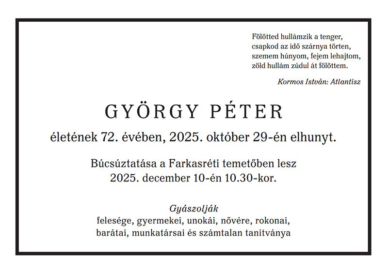 György Péter gyászjelentése