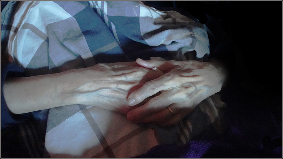 És tegnap nyílt az ajtó, Kata járókerettel bekocogott; és beült közénk.