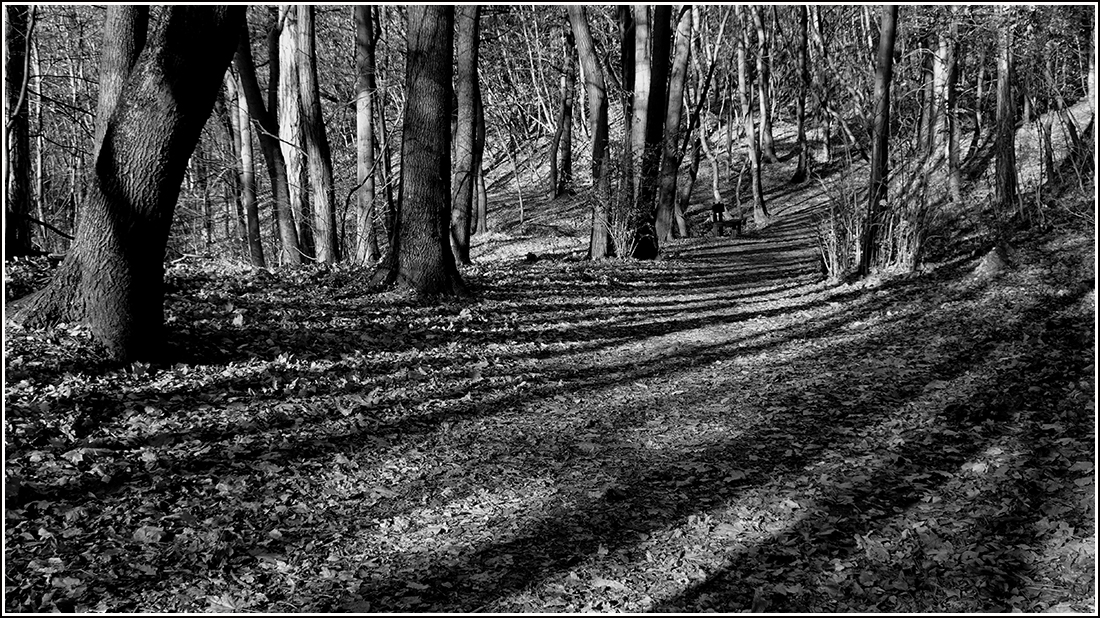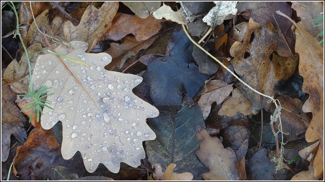 Már nem sárga az avar. Szürkébe játszó tompaokker.
