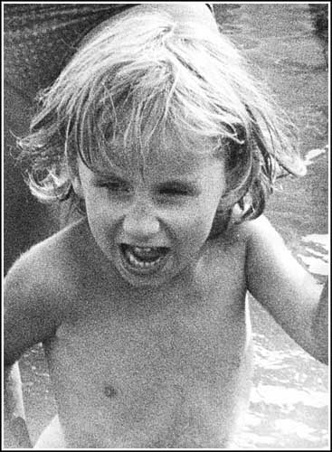 Pici gyerek fal tövében, odaugrik egy tehénféle, megragadja, és elrángatja pár méterre.