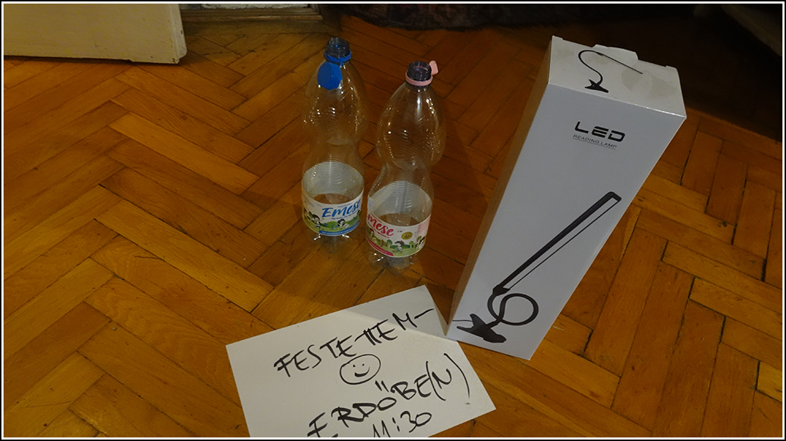 A padlón a cédula mellett egy kínai asztali lámpa,
