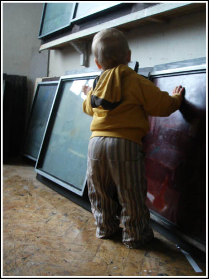 Igen, másfél évesen együtt a műteremben.