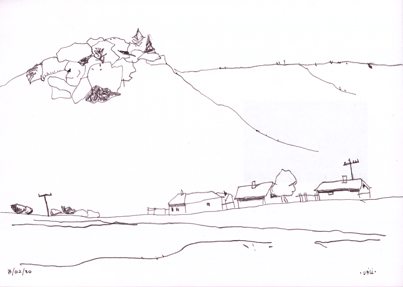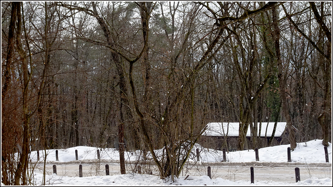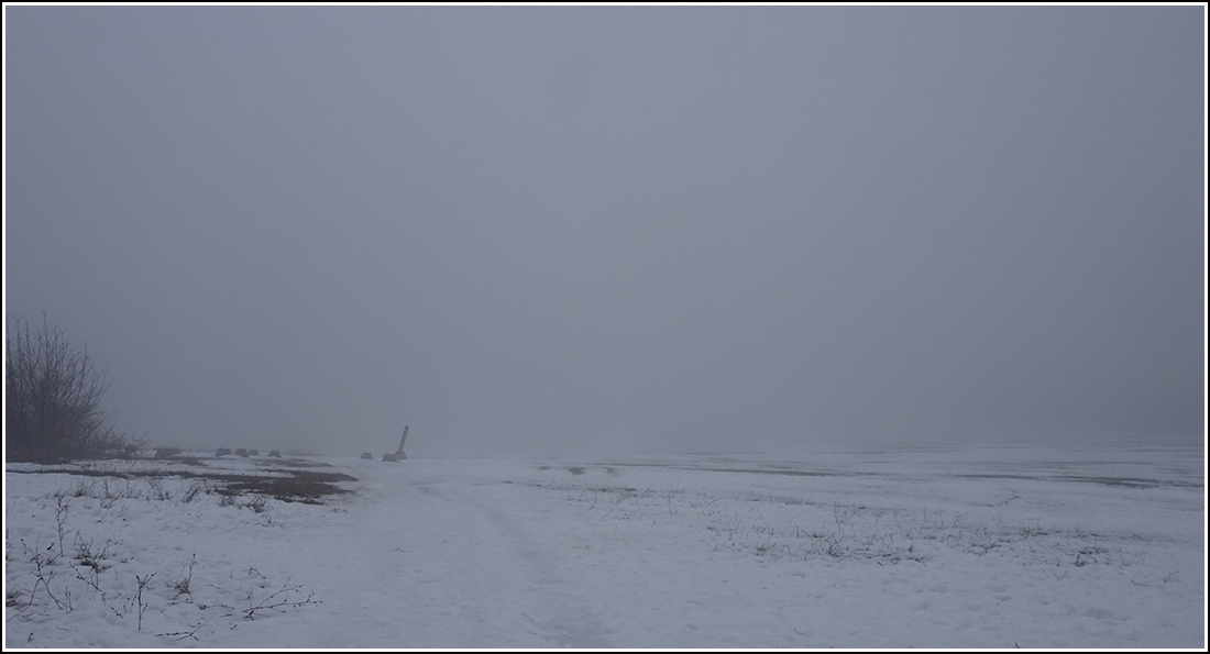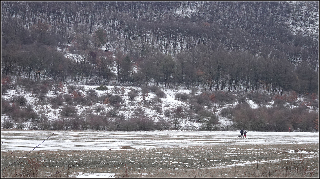 Esőköpenyben. Kerek helyzet, az utakon a kitaposott lábnyomos jégpáncél, körben amúgy az anyaföld.
