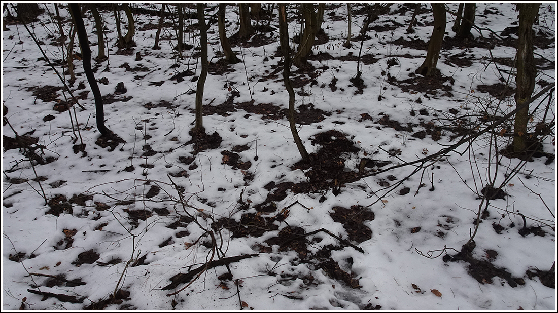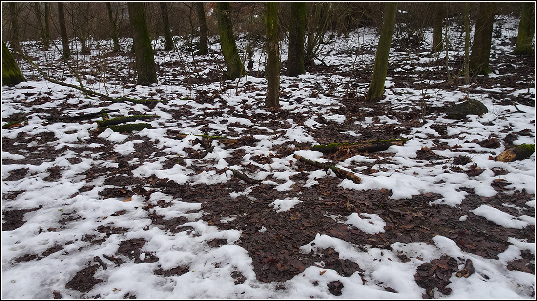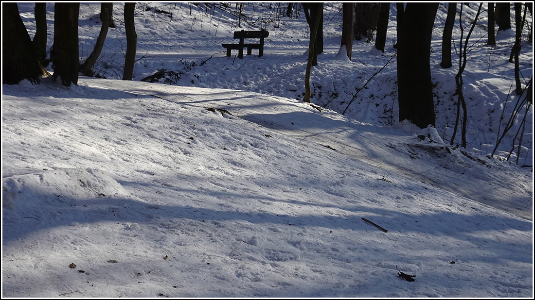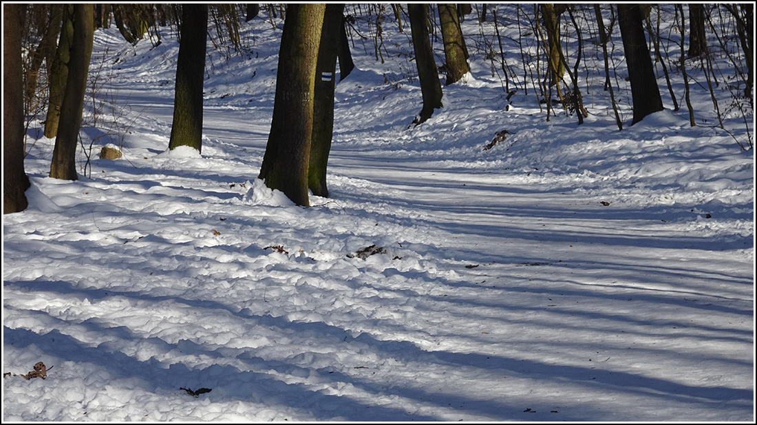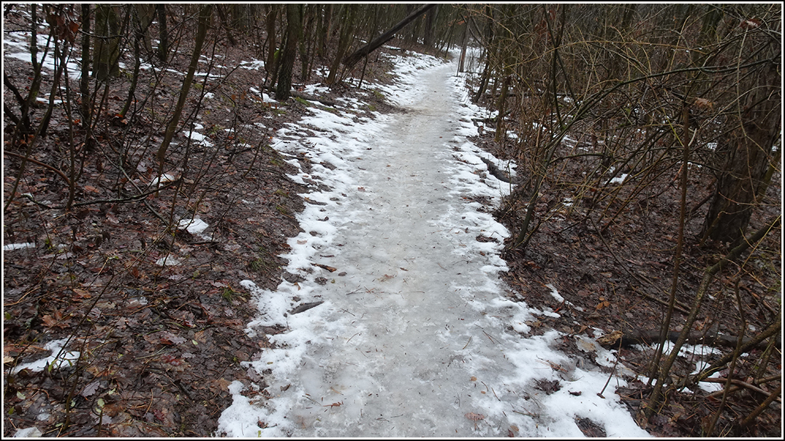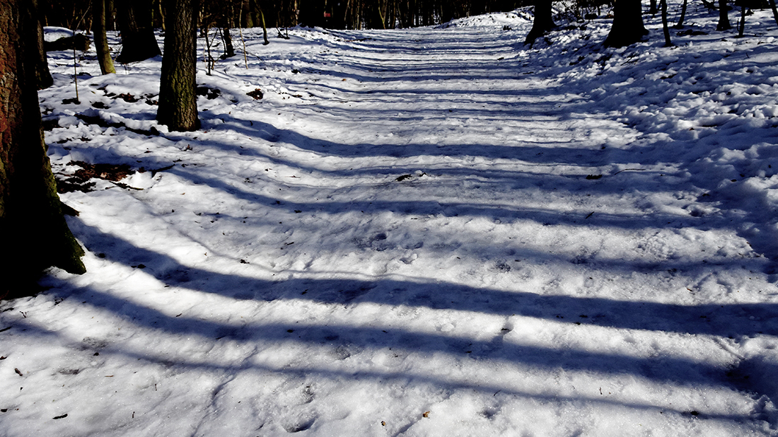 Ma már foltos volt az erdő, micsoda textúra. Úton letaposott jég; jégen könnyebb, mint a múltkori mélyhó.