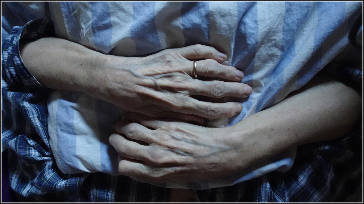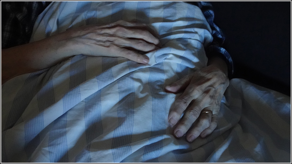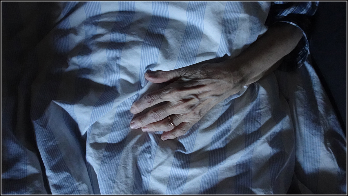 Mutatja, ágya, pizsamája foltokban jócskán vizes.