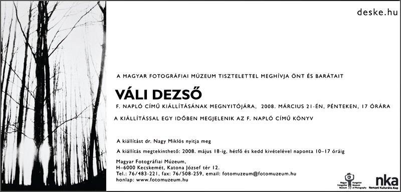 2008-ban a Kecskeméti Fotómúzeumban volt F. NAPLÓ-c.kiállításom. A könyv megjelenése is.