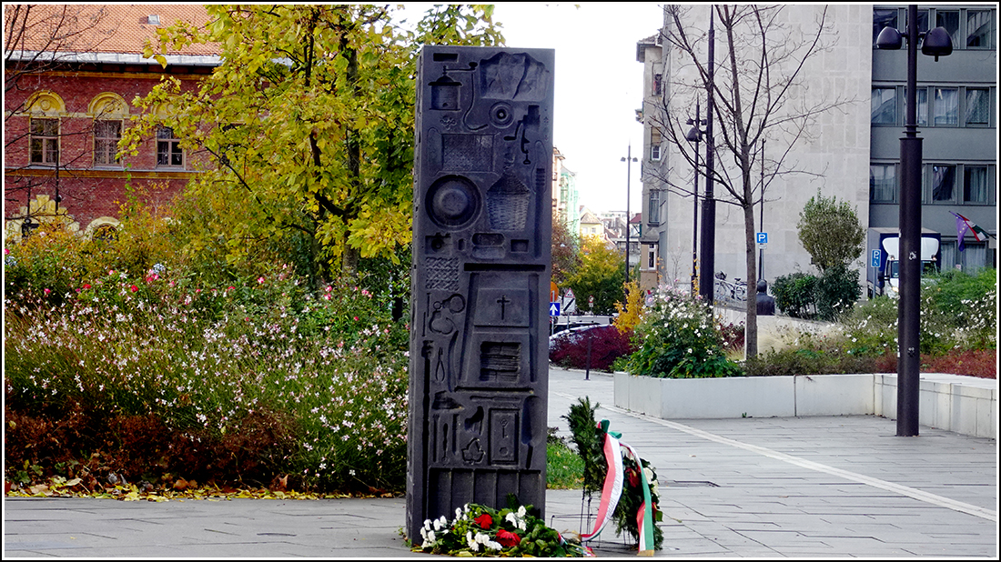 Széna tér. Az ötlet eredeti. 56-os emlékműnek vastömb;