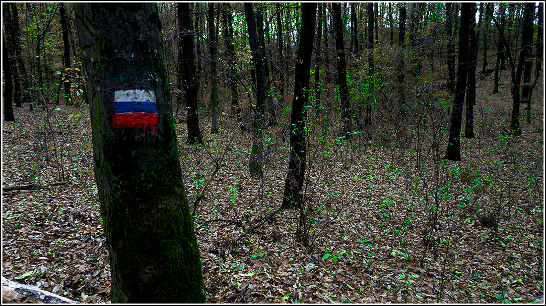 A túristaút legelején, még adomb tetjénél fához támasztva