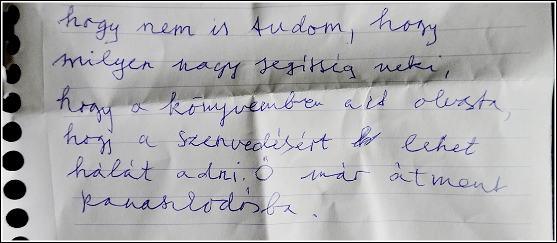 HOGY NEM IS TUDOM, HOGY MILYEN NAGY SEGÍTSÉG NEKI, HOGY A KÖNYVEMBEN AZT OLVASTA,